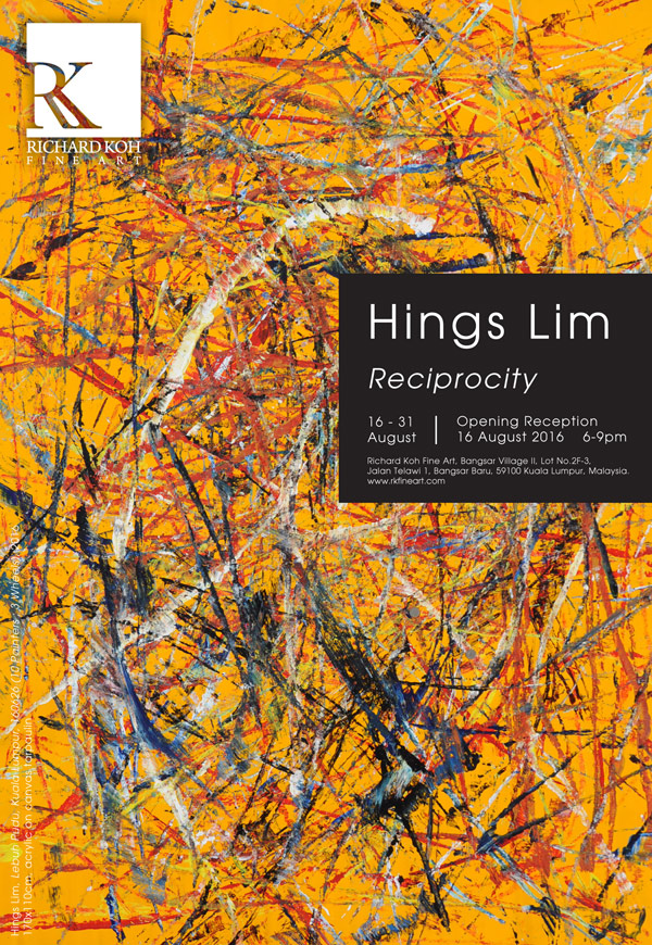 Richard Koh Fine Art (RKFA) is pleased to present Reciprocity by Hings Lim at Richard Koh Fine Art, Lot No. 2F-3, Level 2, Bangsar Village II, Jalan Telawi 1, Bangsar Baru, 59100 Kuala Lumpur, Malaysia from 16 – 31 August 2016. The exhibition will be the emerging artist’s first solo exhibition with the gallery. The opening reception will be held on the 16th of August (Tues), from 6 – 9 pm.